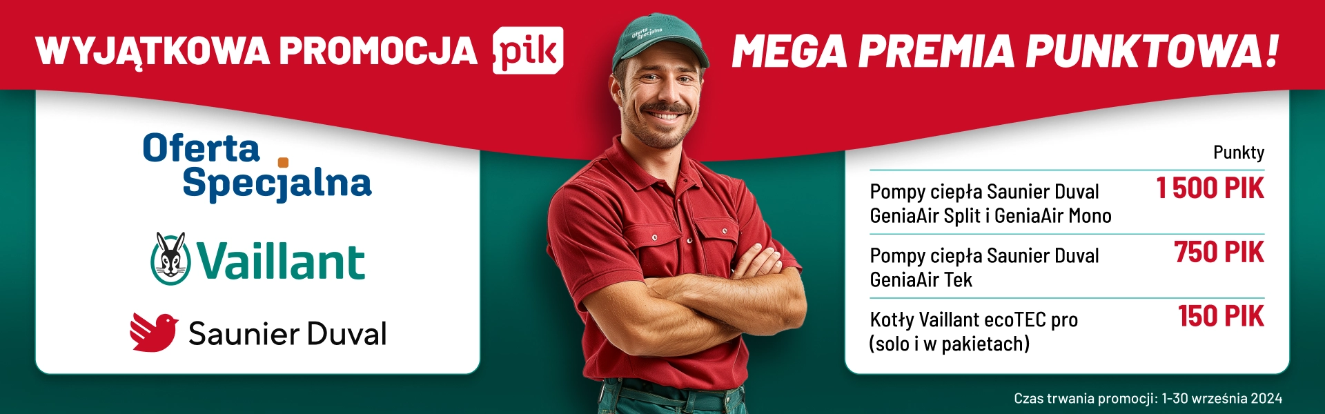 Instalatorze! To doskonała okazja, by skorzystać z powracającej promocji PIK na pompy ciepła Saunier Duval i kotły Vaillant, dzięki której możesz zdobyć dodatkowe punkty PIK!