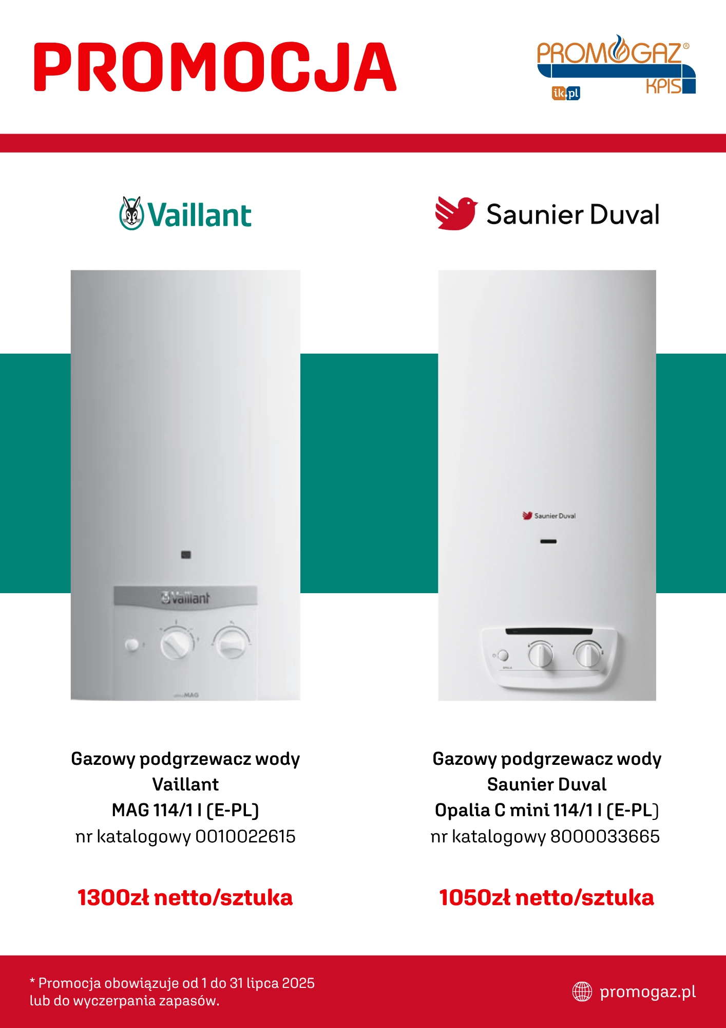 Właśnie rusza super promocja na gazowe podgrzewacze wody Vaillant i Saunier Duval!